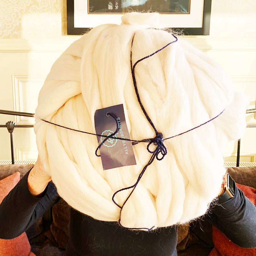 I only use the highest quality 100% unspun pure merino wool to hand-knit my products, so, take a peek online and treat yourself - or book onto one of my workshops to learn how to arm knit yourself!