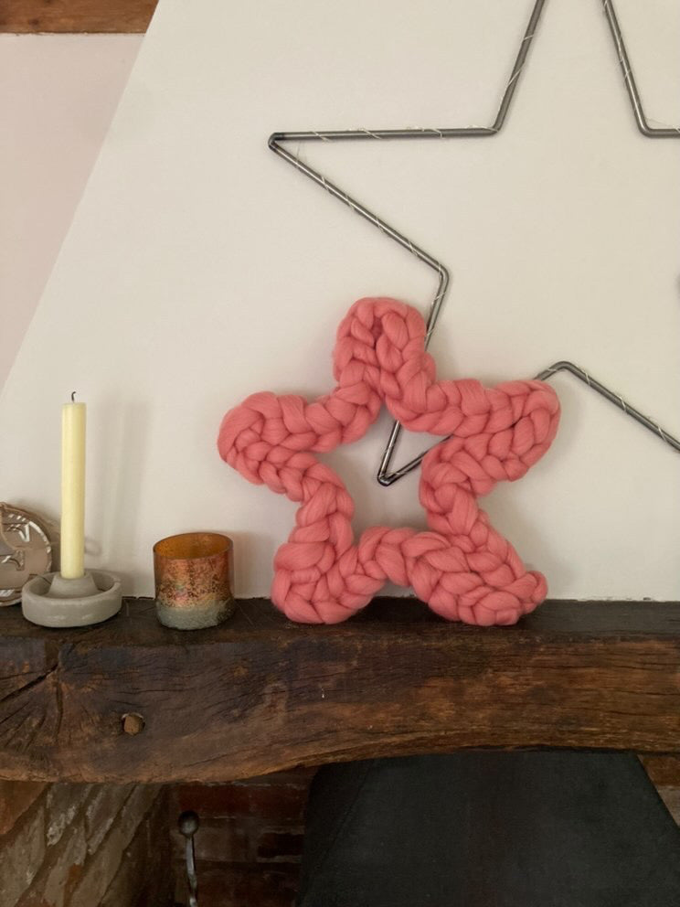 Create a stunning festive star wreath using soft, luxurious pure merino wool - the perfect handmade decoration to add a cosy, magical touch to your home for Christmas.